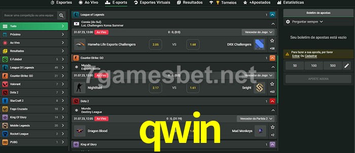 O qwin oferece uma grande seleção de opções de apostas em e-sports com probabilidades competitivas